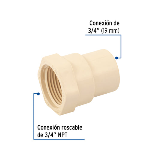 Cople cpvc 3/4 r ext 45099616165 Foset Pieza