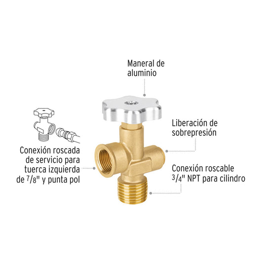 Valvula para cilindros de gas LP hasta 45 kg 47651 Foset Pieza