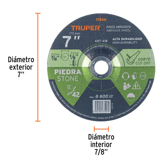 Disco p/corte metale tipo42 diametro 7 alto rendimiento 11565 truper Pieza
