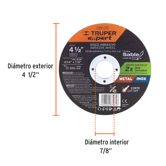 Disco tipo 41 corte metal Linea Sable 4 1/2 1mm Expert 11899 truper Pieza