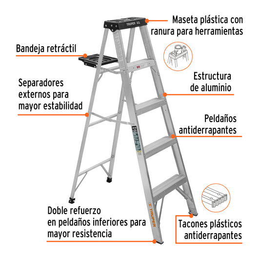 Escalera de tijera tipo iii 5 escalones con bandeja truper 16743 Pieza