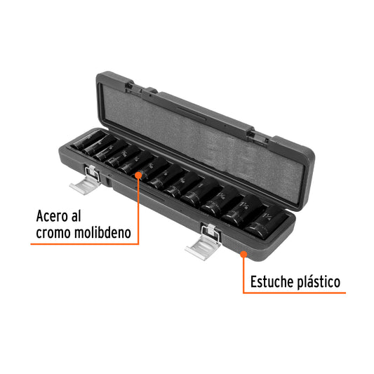 Juego de 12 dados largos de impacto cuadro 1/2P 6 puntas mm 100946 Pieza