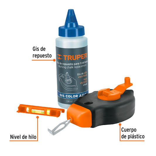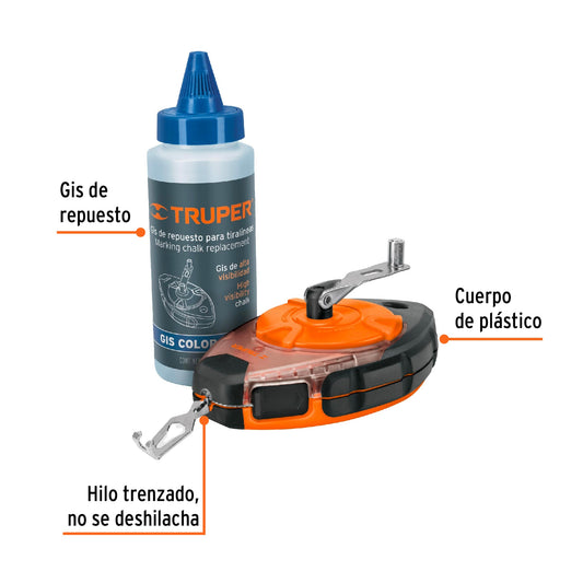 Tiralíneas 100 ft cuerpo plástico incluye gis 18575 Truper Pieza