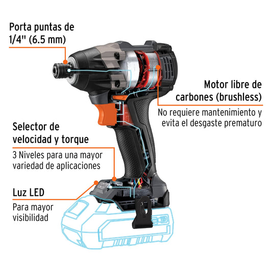 Destornillador d/impacto inalámbrico 1/4´, 20V, s/accesorios 101406 Truper Expert Pieza