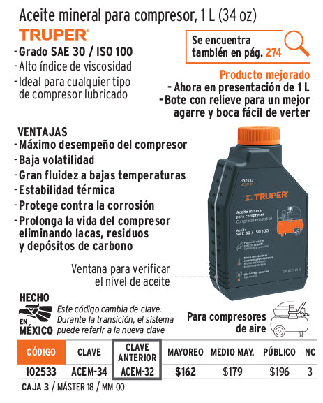 Aceite semi sintético 4 tiempos 946 ml 32 oz Truper 102533 Pieza