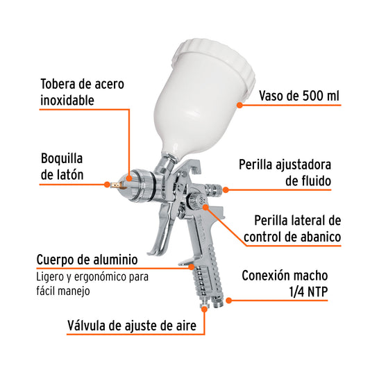 Pistola p/pintar gravedad HVLP vaso plastico 1.7 mm Truper 12129 Pieza