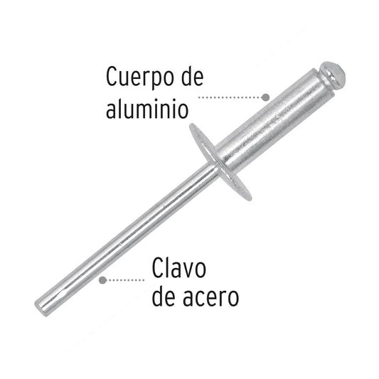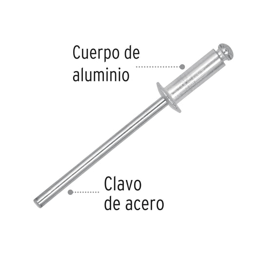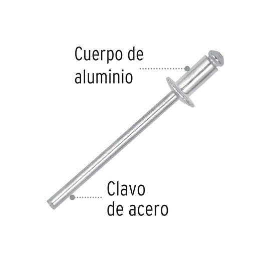Remaches con espiga 3/16p x 1/2p bolsa con 50 pzas 44531 Fiero Pieza