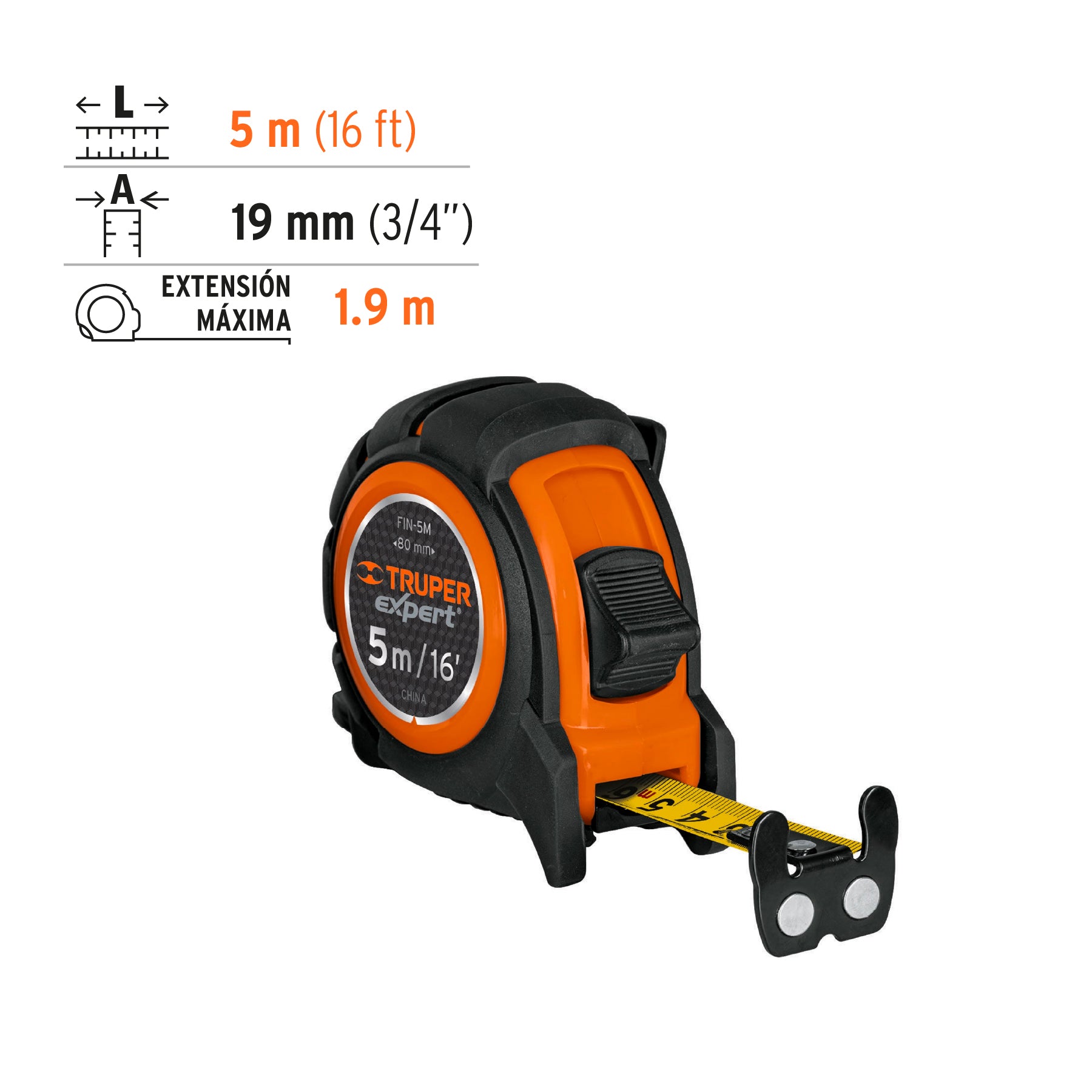 Flexometro industrial 5 mt cinta 3/4 12694 truper Pieza
